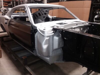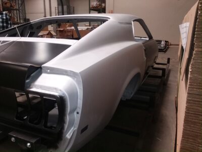 This 1969 Mustang Fastback body shell comes complete with doors and deck lid pre-hung and properly fitted.