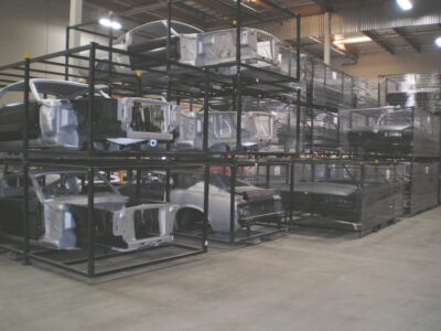 All replacement body shells are encased in a strong, welded steel cage with forklift shoes for easy loading and unloading. The body shell is bolted to the steel shipping cage.